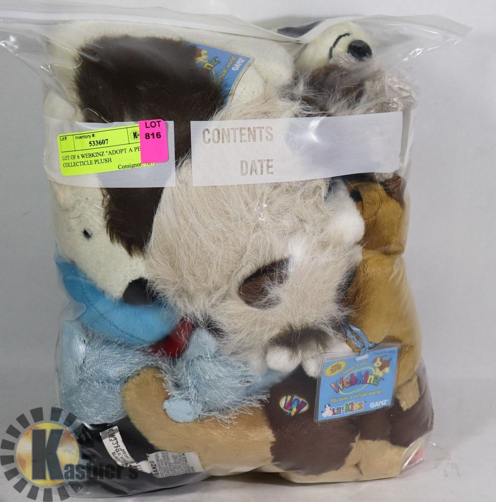 LOT OF 6 WEBKINZ "ADOPT A PET" COLLECTIBLE PLUSH