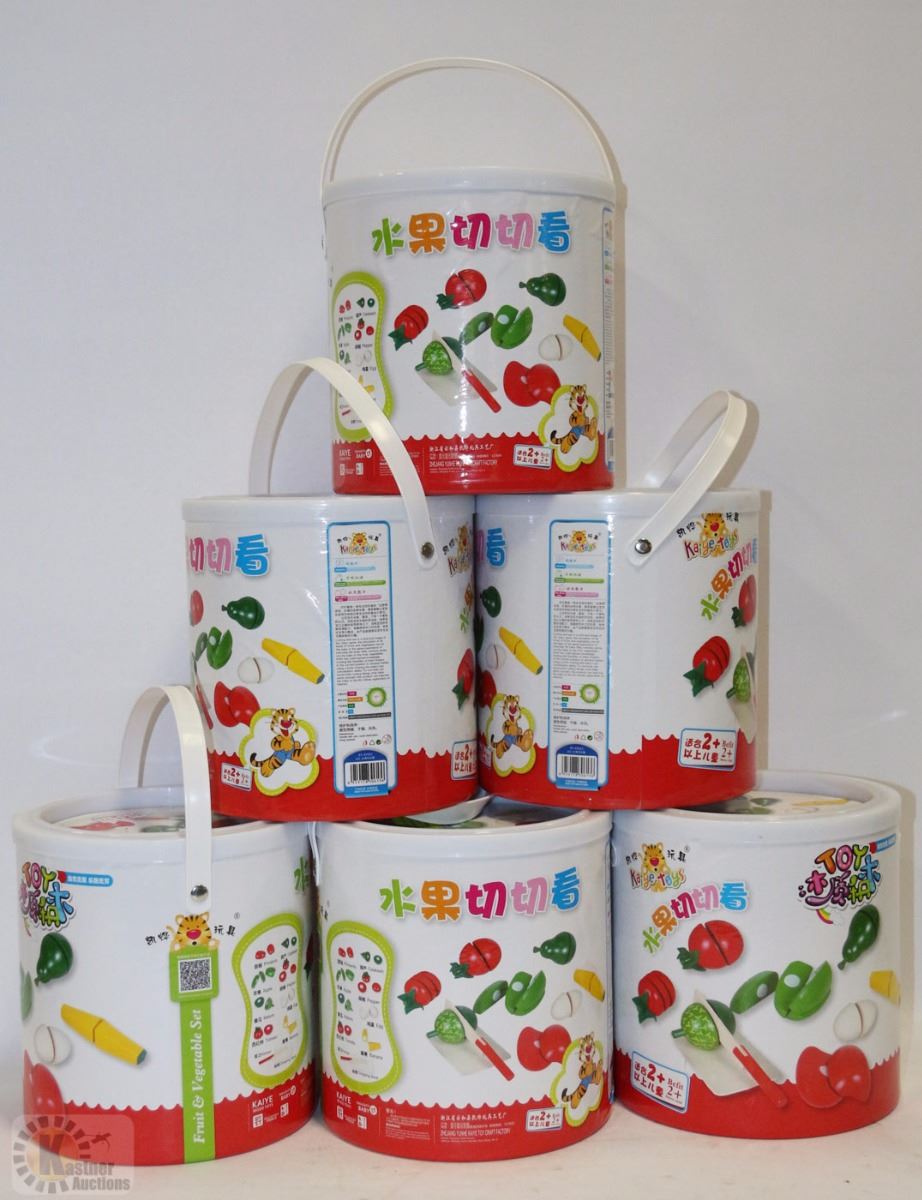 LOT OF 6 WOODEN VEGETABLE BUCKETS -TEACHES KIDS