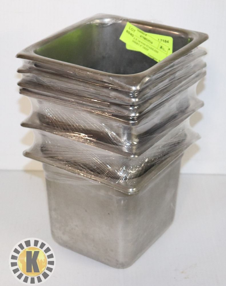 LOT OF 6 X 1/6 PAN STAINLESS STEEL INSERT 6” DEEP