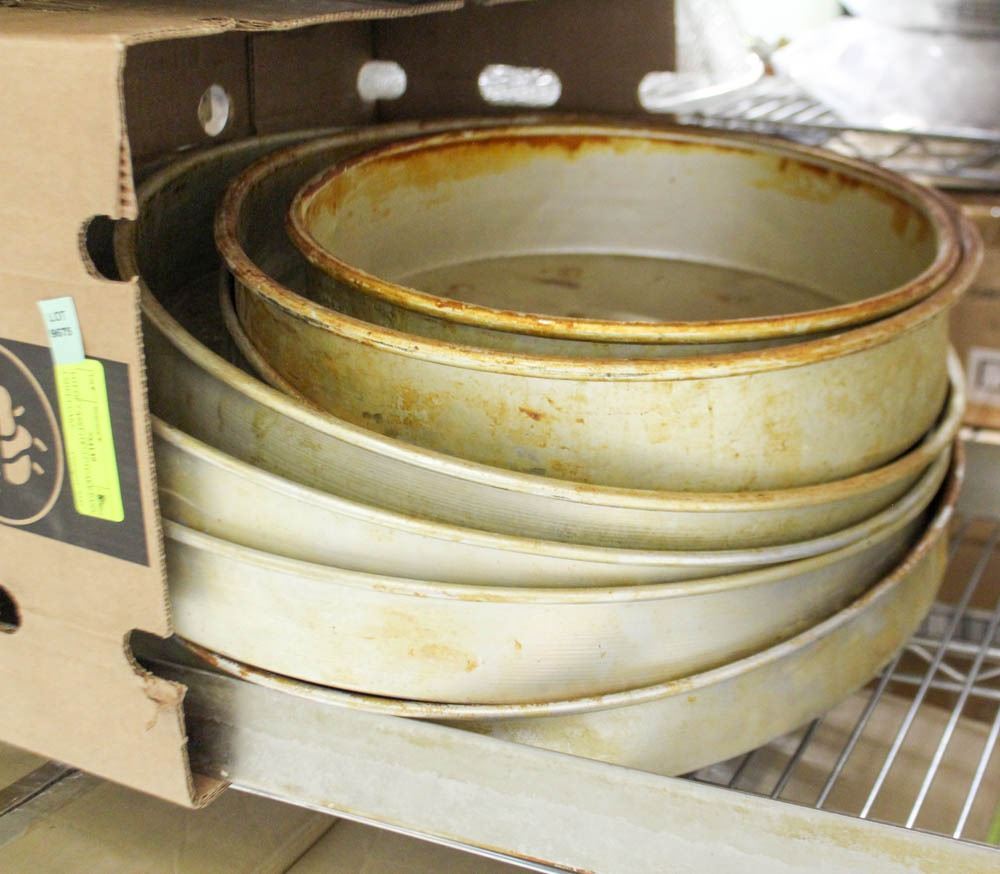 LOT OF 7 ASST (18"-12") CAKE PANS, 1 SHEET CAKE
