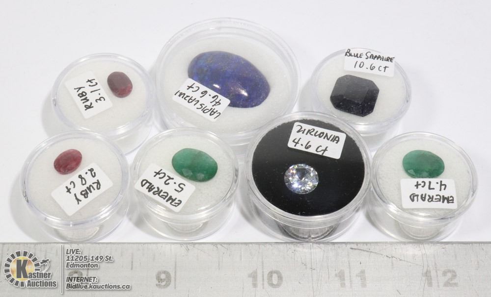 LOT OF 7 RUBY, EMERALD, SAPPHIRE ETC. GEMS