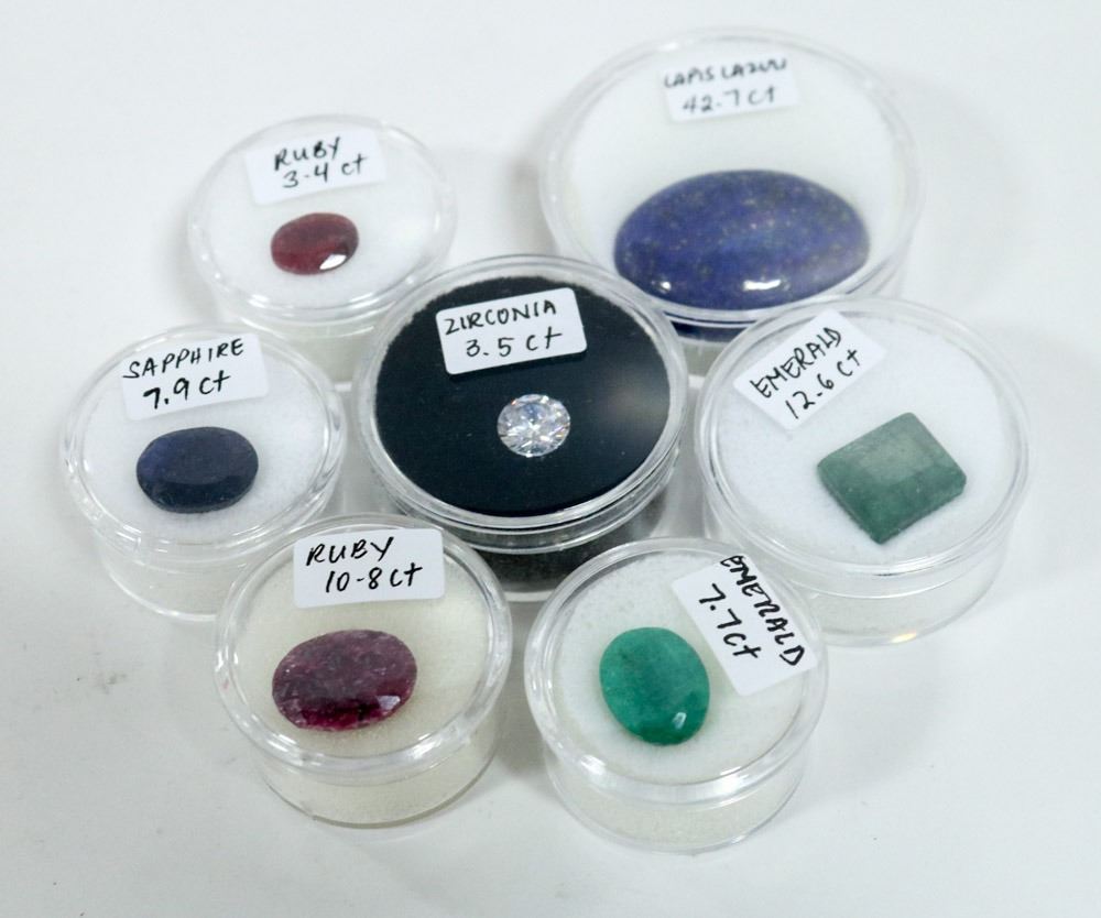 LOT OF 7 VARIOUS RUBY, EMERALD, SAPPHIRE, LAPIS