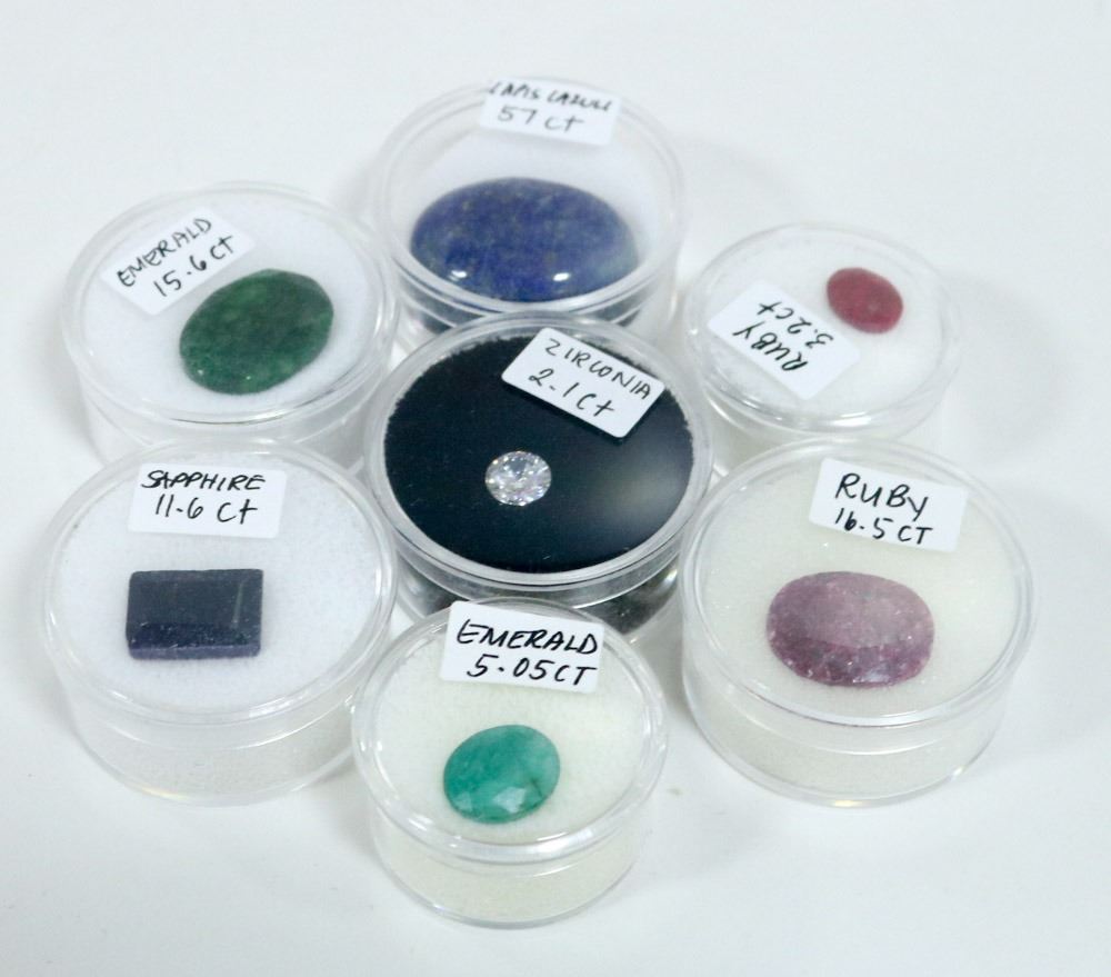 LOT OF 7 VARIOUS RUBY, EMERALD, SAPPHIRE, LAPIS
