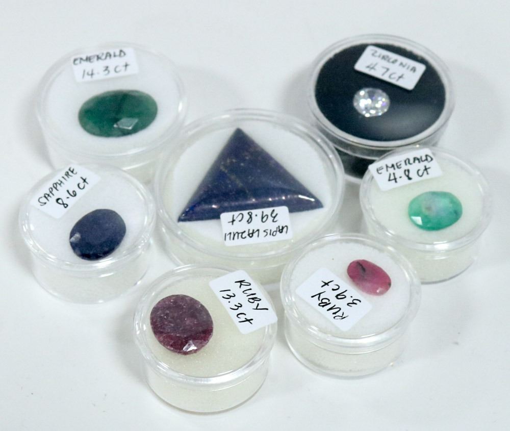 LOT OF 7 VARIOUS RUBY, EMERALD, SAPPHIRE, LAPIS