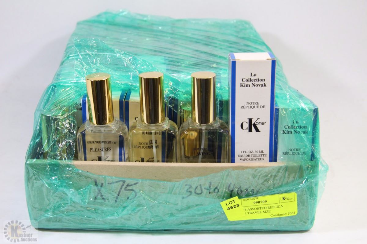 LOT OF 75 ASSORTED REPLICA PERFUME TRAVEL SIZE