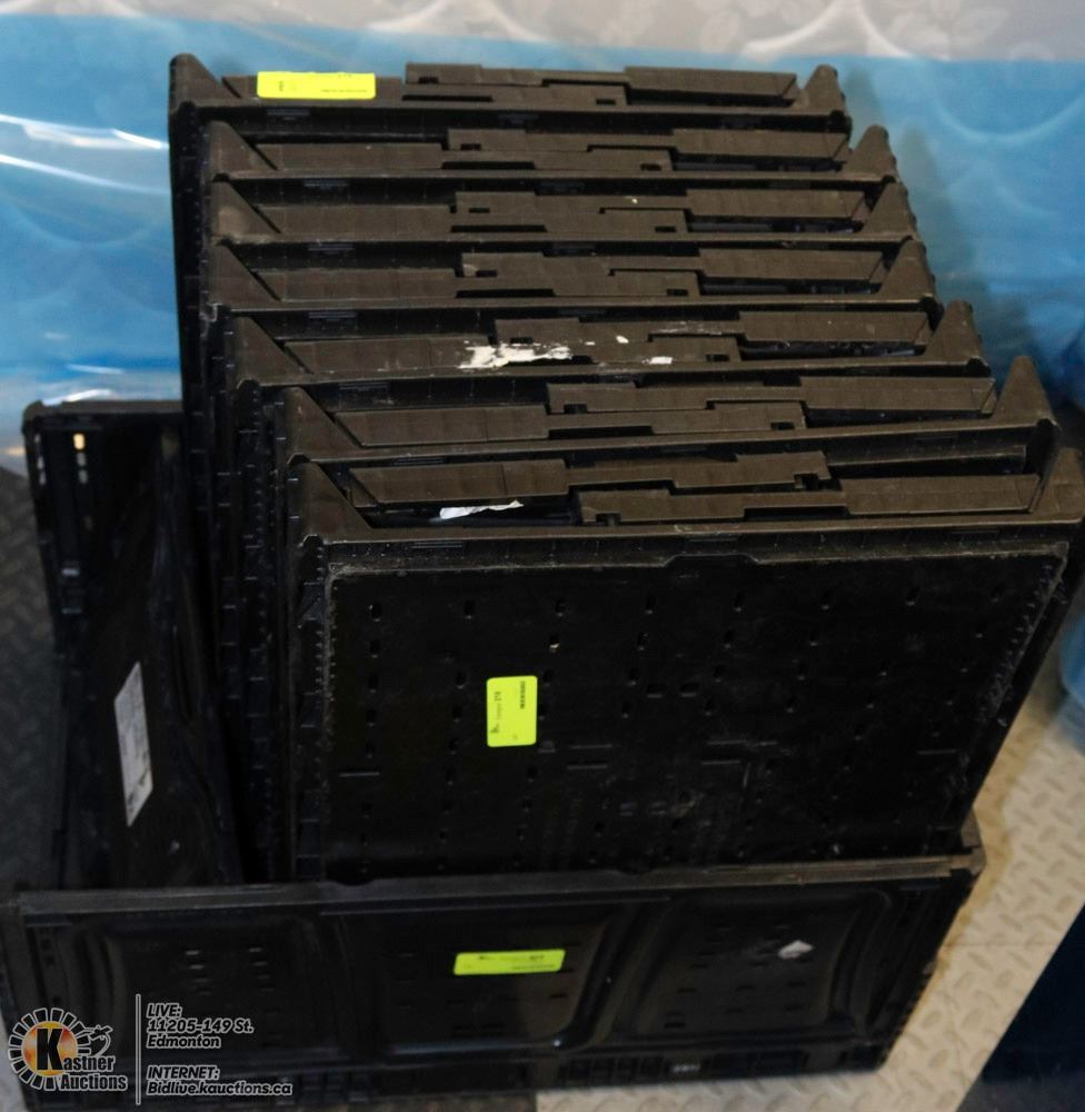LOT OF 8 FOLDING PLASTIC STORAGE BINS