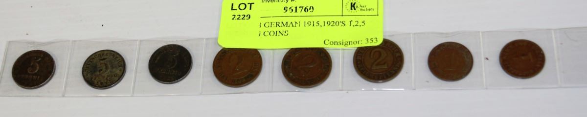 LOT OF 8 GERMAN 1915,1920'S 1,2,5 PFENNIG COINS
