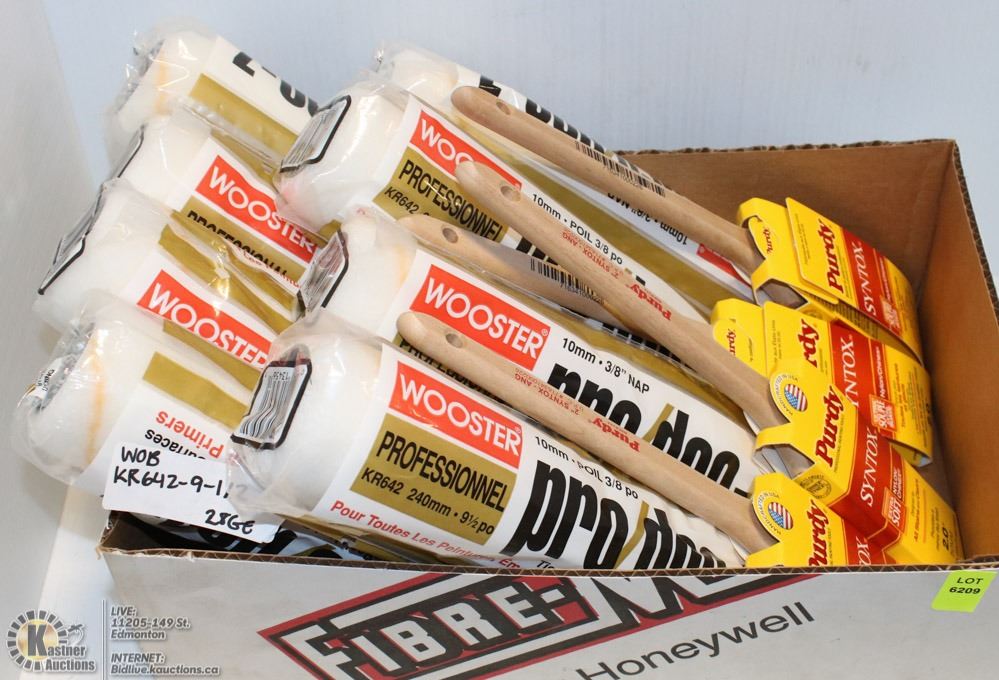 LOT OF 8 PAINT ROLLERS AND SMALL BRUSHES