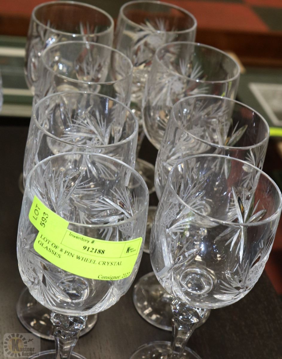 LOT OF 8 PIN WHEEL CRYSTAL GLASSES