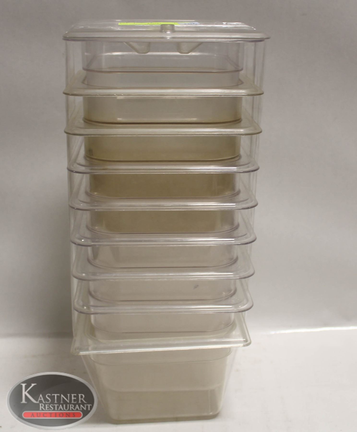 LOT OF 9 - 1/6 SIZE POLYCARB INSERTS W/ 1 LID