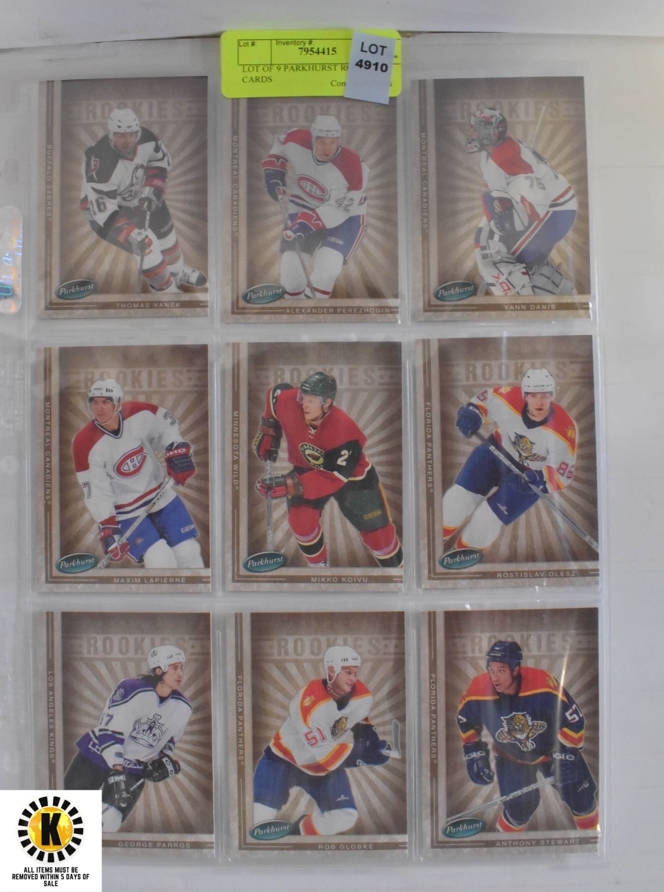 LOT OF 9 PARKHURST ROOKIE CARDS