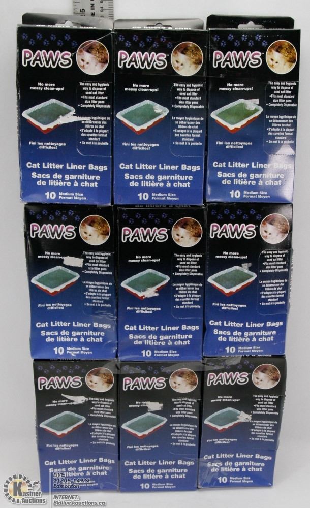 LOT OF 9 PAWS CAT LITTER LINER BAGS