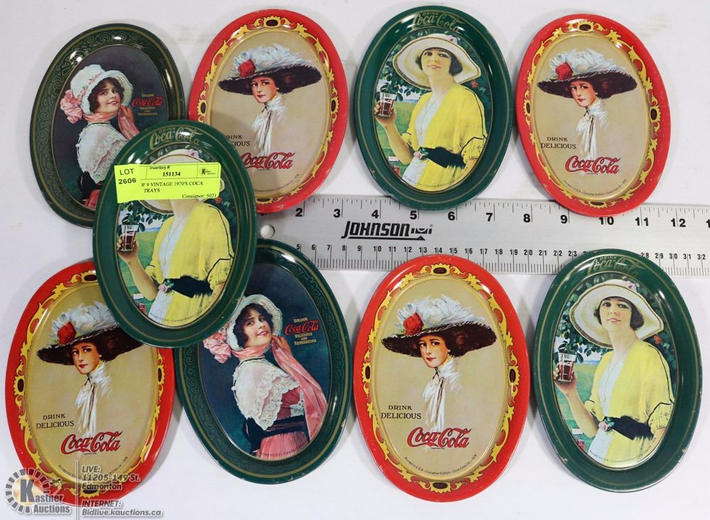 LOT OF 9 VINTAGE 1970'S COCA COLA TRAYS