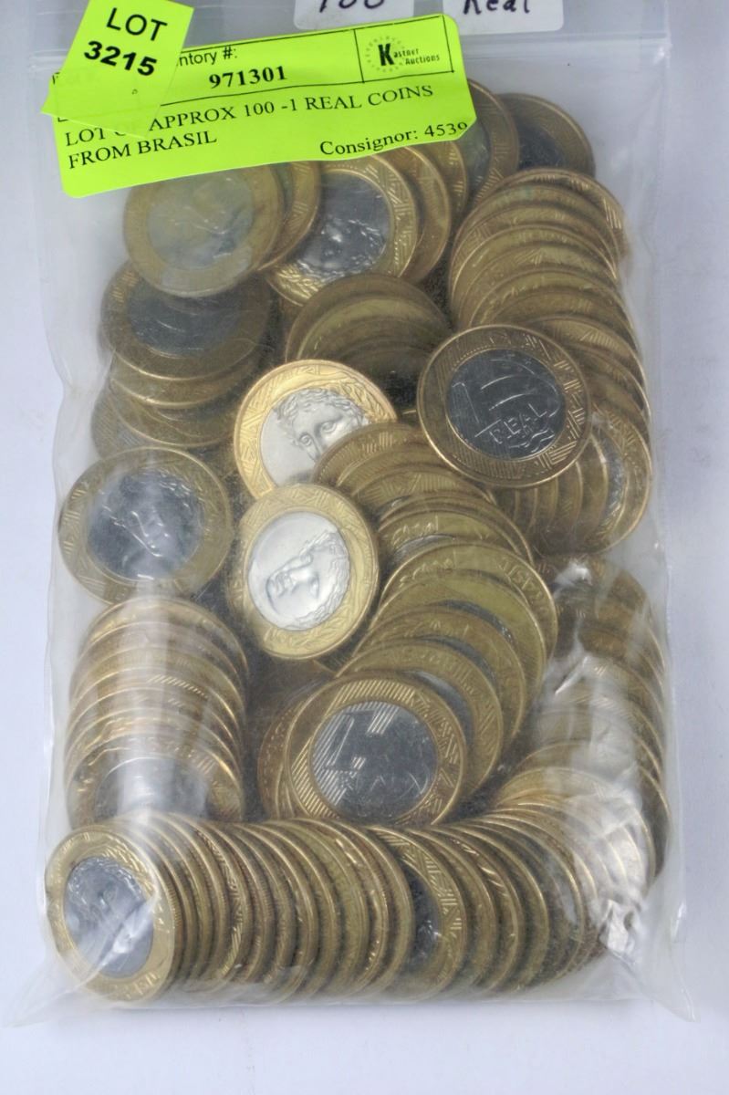 LOT OF APPROX 100 -1 REAL COINS FROM BRASIL