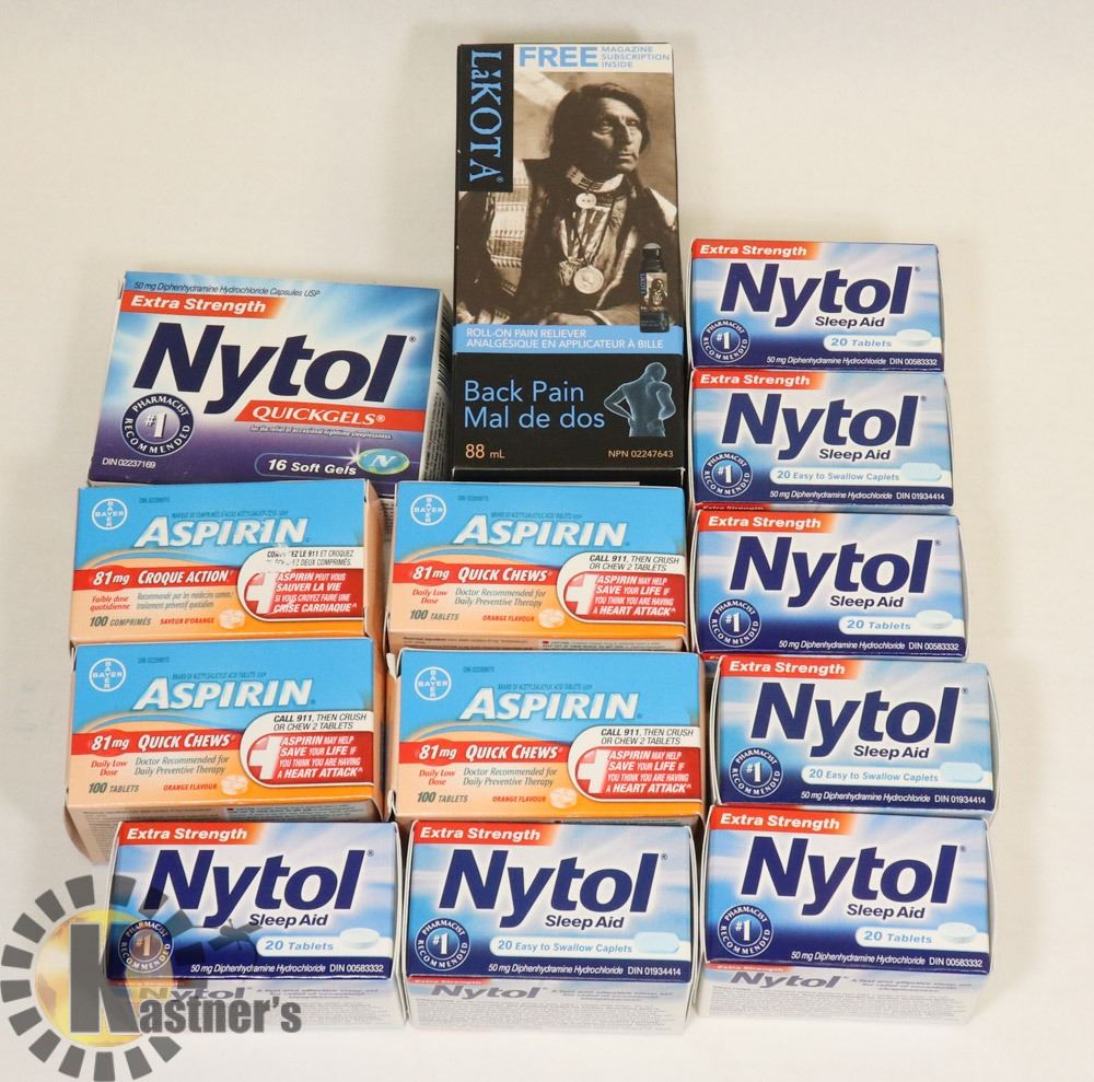 LOT OF ASPRIN AND ZZZQUIL LIQUICAPS.
