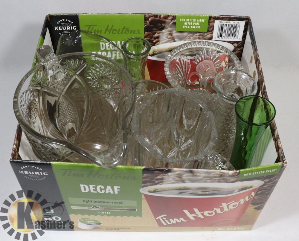 ANTIQUE AND VINTAGE CUT CRYSTAL AND VINTAGE JUGS AND VASES.