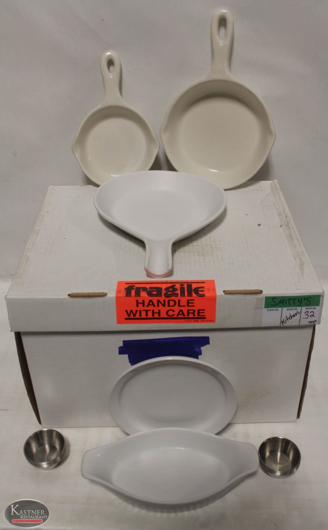 LOT OF ASSORTED DISHWARE INCL. CERAMIC SKILLET