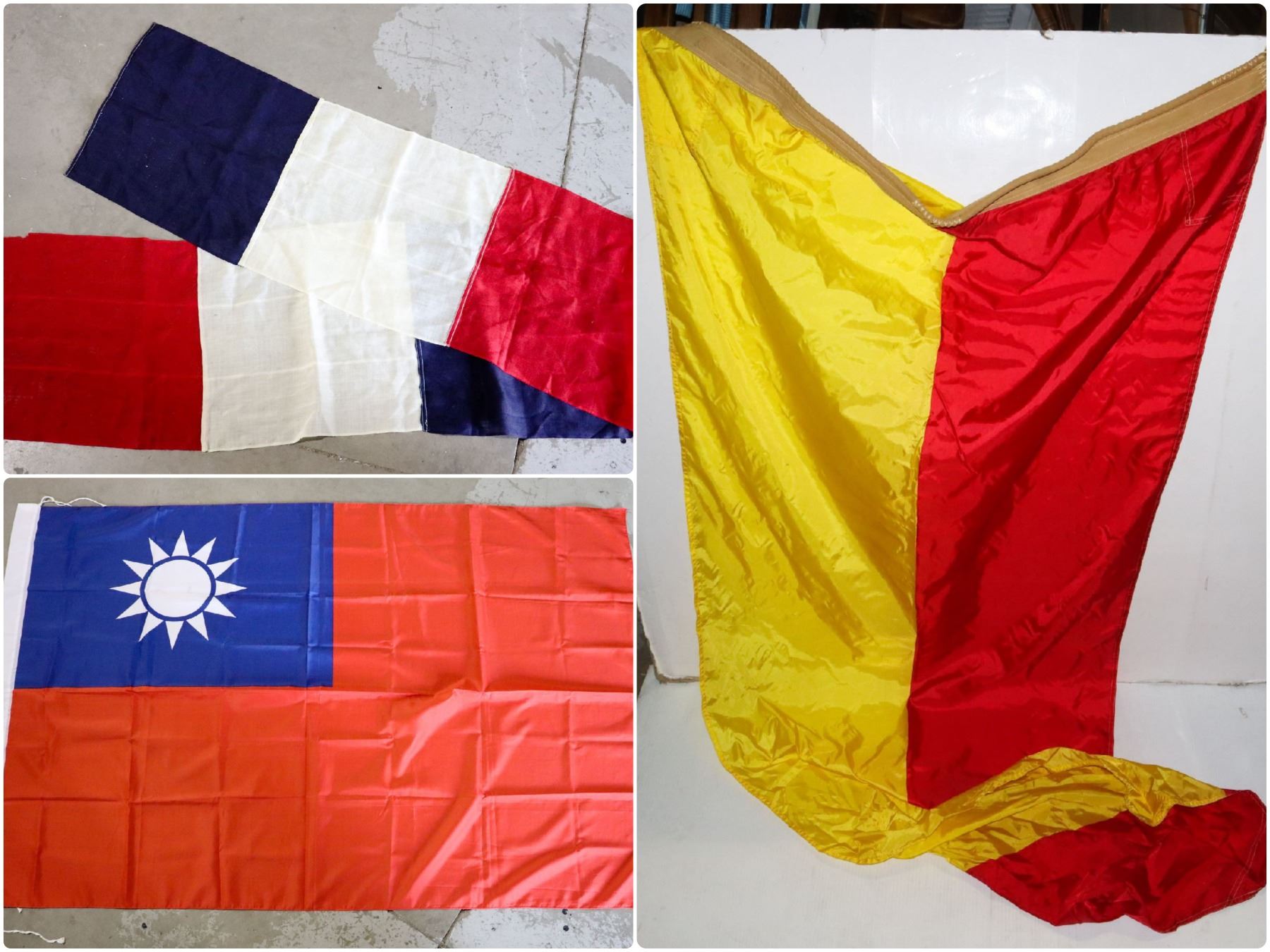TAIWAN REPUBLIC OF CHINA ROC FLAG 2 SIDED 60 X 36, VINTAGE LONG CLOTH FLAG 108 X17.5, AND LATE 20TH CENTURY LARGE SIGNAL FLAG PENNANT