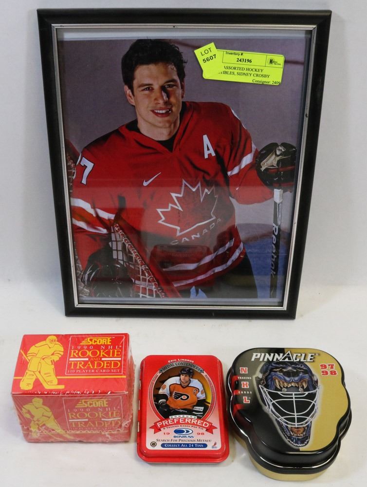 PICTURE, SEALED SCORE 1990 ROOKIE SET AND 2 TINS OF ASSORTED CARDS. COLLECTIBLES