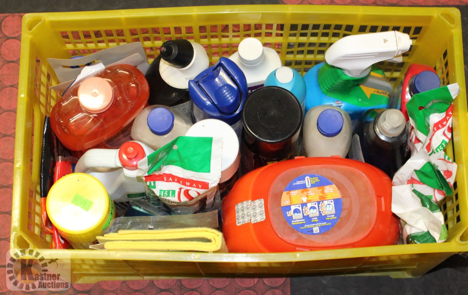 LOT OF ASSORTED HOUSEHOLD CLEANERS AND SUPPLIES