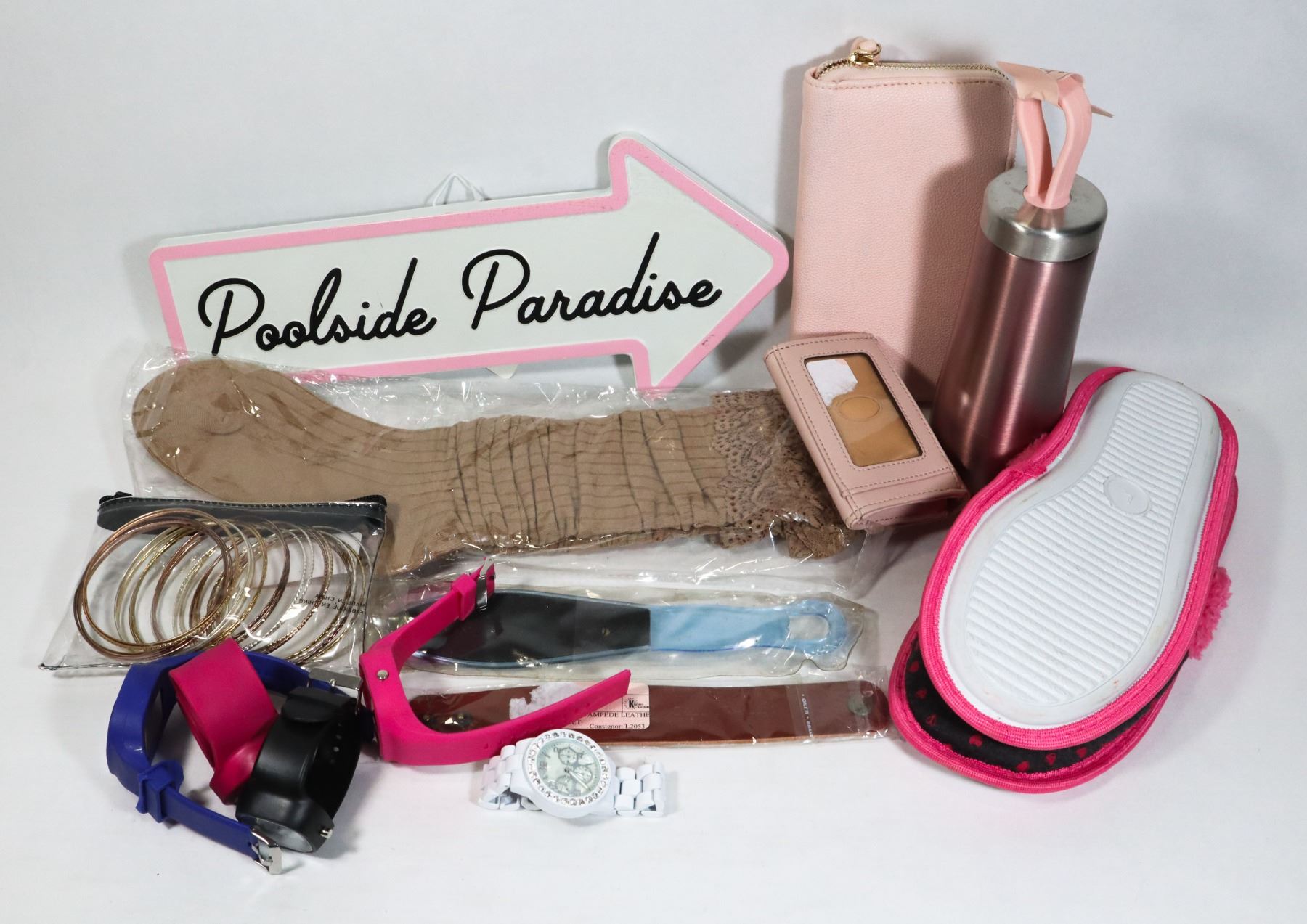 LOT OF ASSORTED ITEMS INCLUDES WATER BOTTLE,