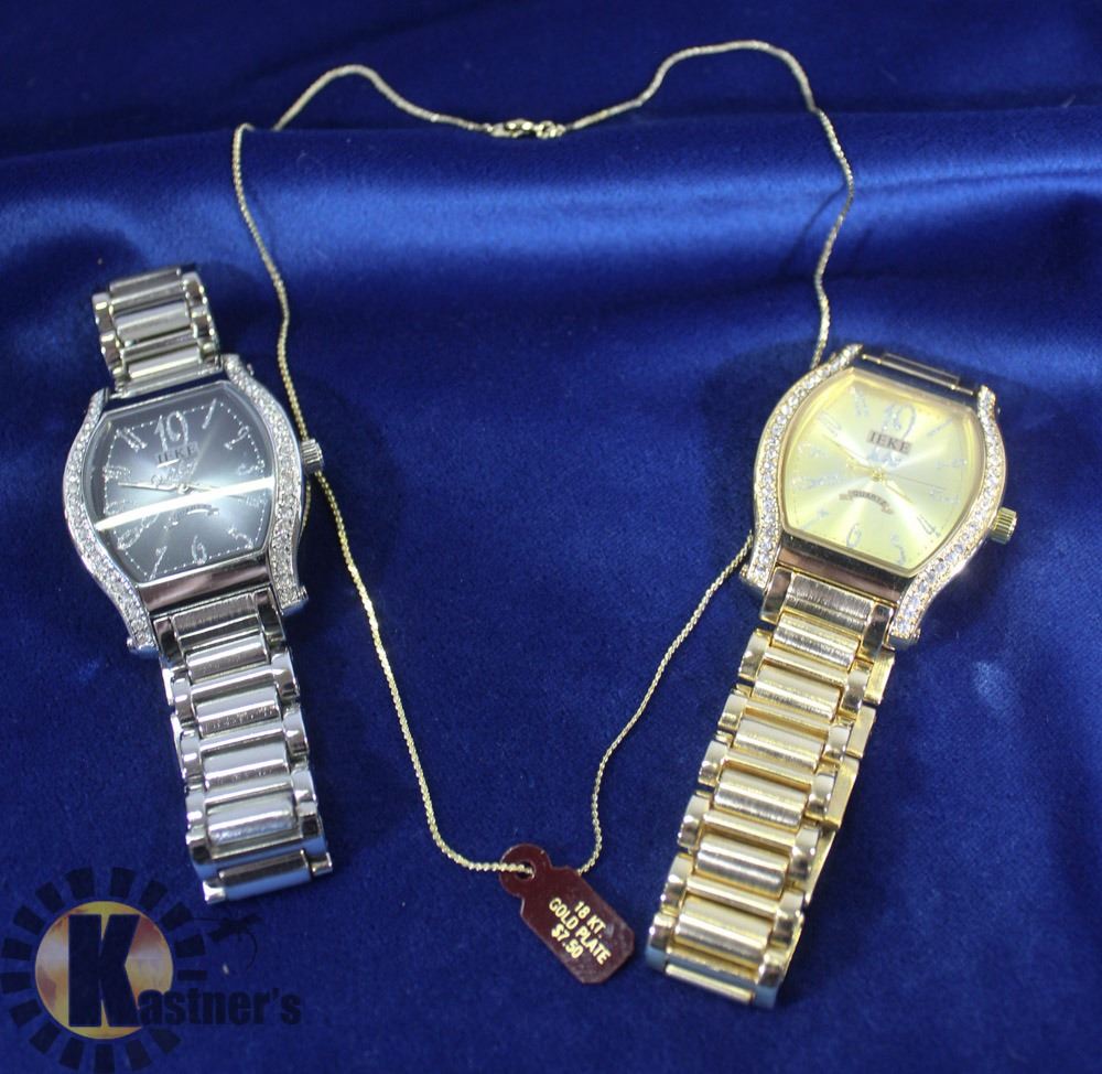 GOLD TONE WATCH, SILVER TONE WATCH MATCHING PAIR, PLATED 18K GOLD NECKLACE - JEWELLERY/COLLECTIBLES