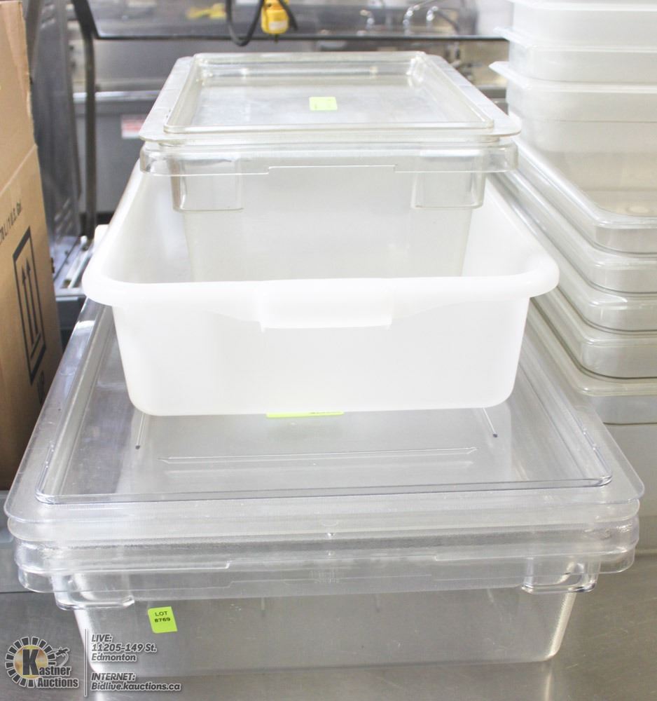 LOT OF ASSORTED PLASTIC TOTES AND STORAGE BINS