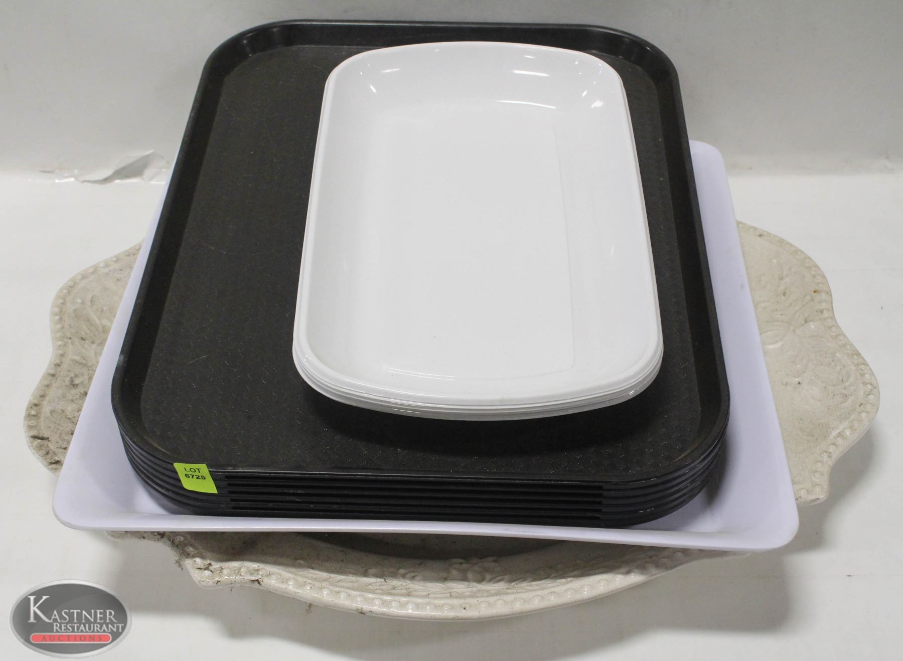LOT OF ASSORTED SERVING TRAYS AND PLATTERS