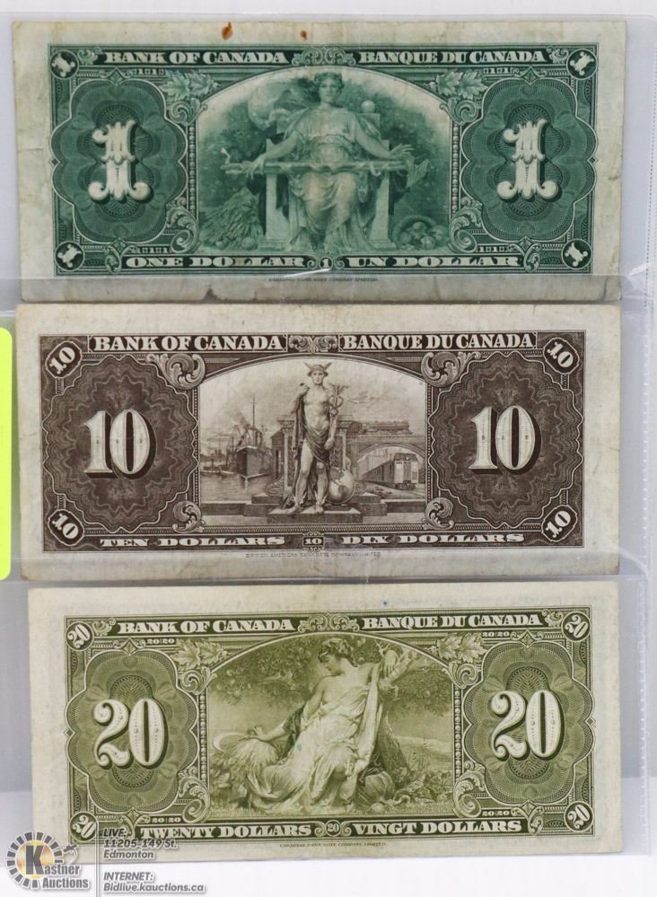 LOT OF CANADIAN 1937 BILLS INCL $1.00, $10.00 &