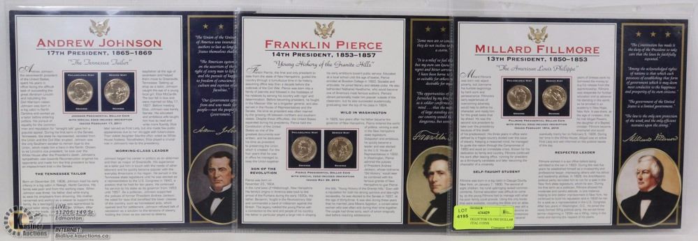 INCL MILLARD FILLMORE 13TH PRESIDENT 1850-1853, FRANKLIN PIERCE 14TH PRESIDENT 1853-1857, AND ANDREW JOHNSON 17TH PRESIDENT 1865-1869