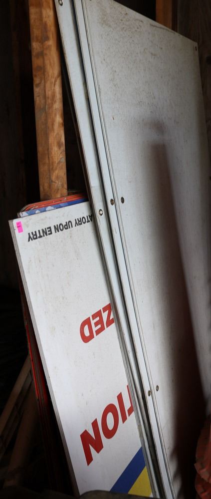 LOT OF CONSTRUCTION & HAZARD SIGNS
