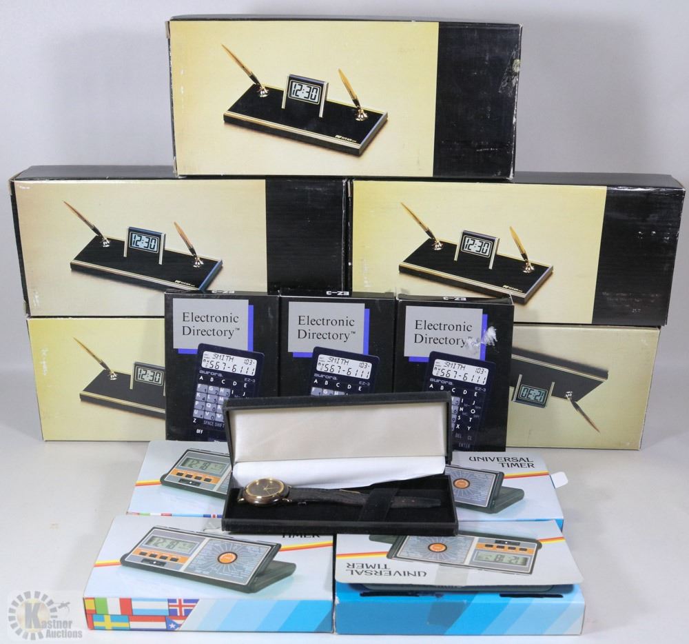 ELECTRONIC DIRECTORIES AND UNIVERSAL TIMERS. ALL NEW IN BOXES WITH NEW WOODEN WATCH NEEDS BATTERY