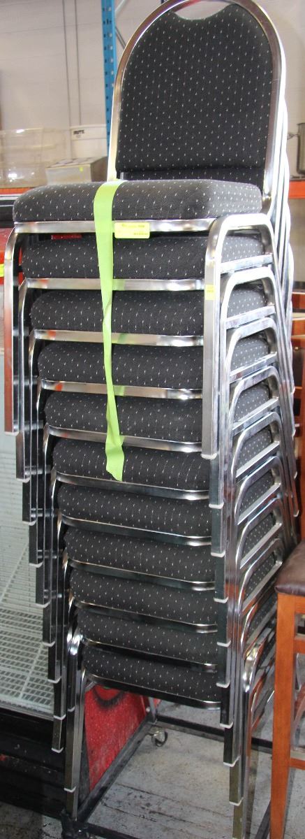 LOT OF ELEVEN STACKING CHAIRS WITH CART