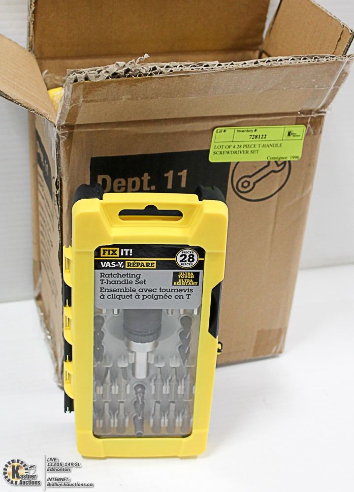 LOT OF FOUR 28 PIECE T-HANDLE SCREWDRIVER SET