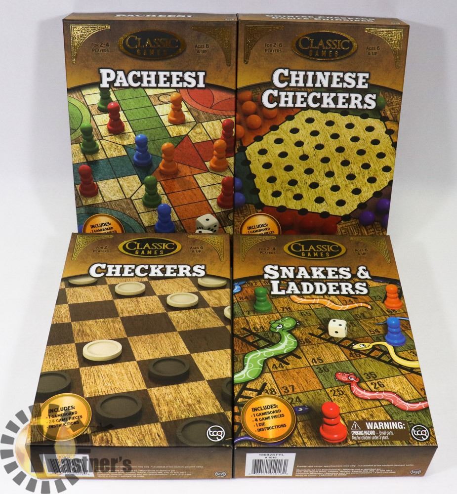 PARCHEESI, SNAKES AND LADDERS, CHECKERS.
