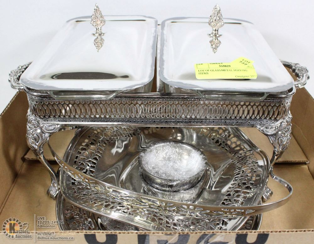LOT OF GLASS/METAL SERVING ITEMS