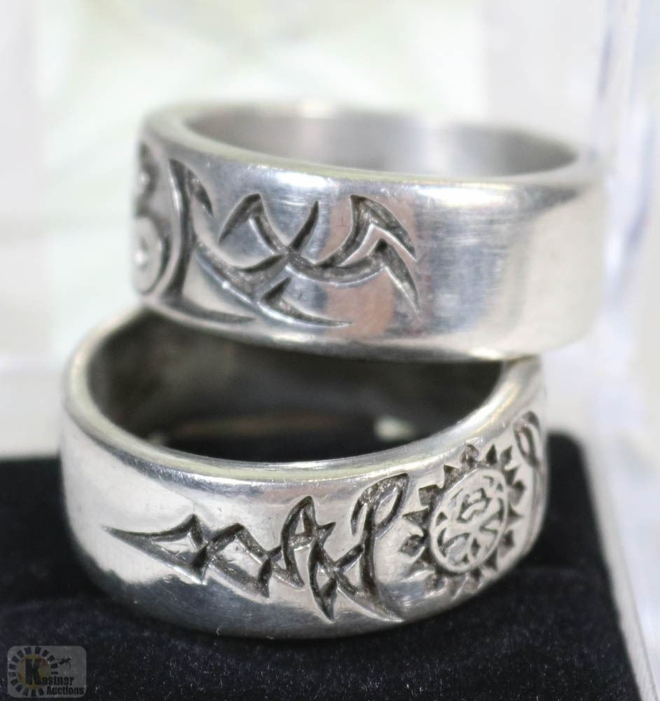 LOT OF HEAVY 2 MENS BAND RINGS