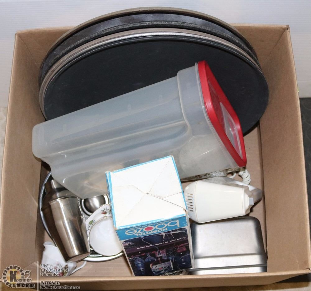 I.V. LOOKING HOLDER WITH TUBE, RUBBERMAID CONTAINER, MIXER, SERVING TRAYS AND MORE