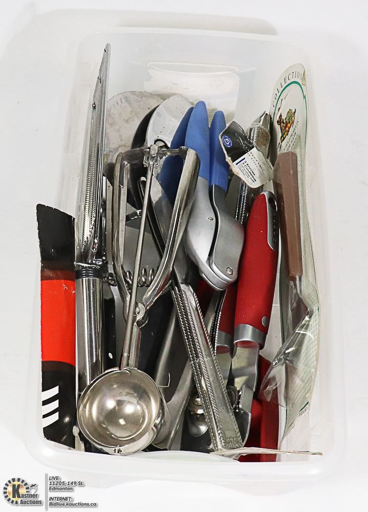 LOT OF KITCHEN UTENSILS, INCL NEW IN PACKAGE