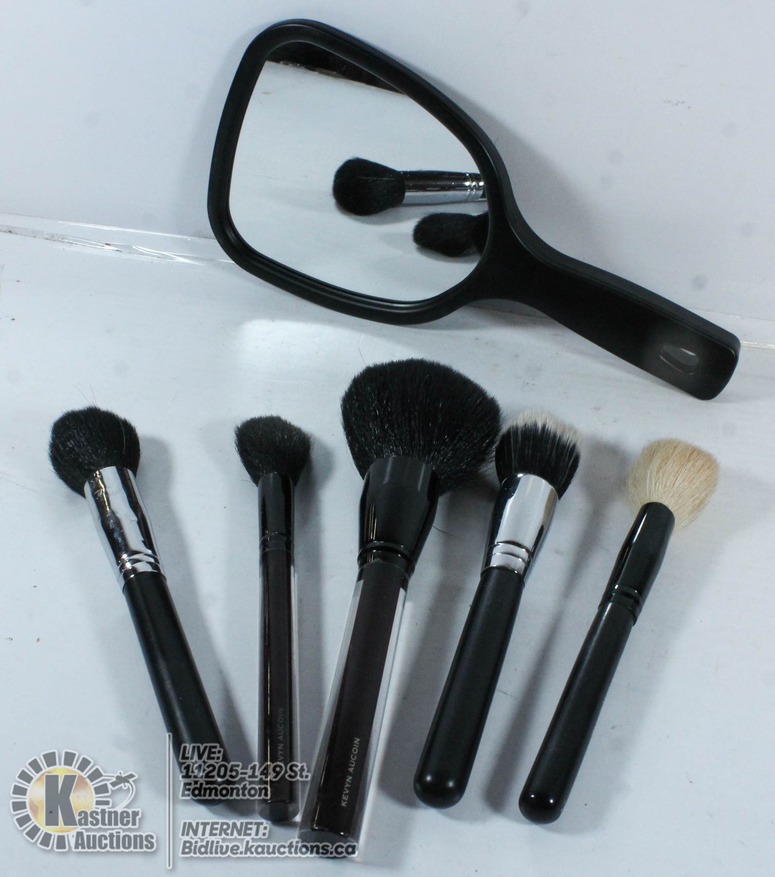 LOT OF MAKEUP BRUSHES AND MAGNIFICATION MIRROR