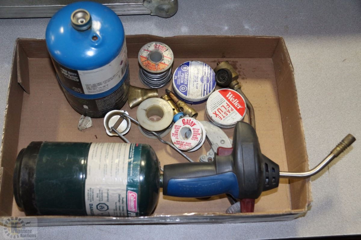 LOT OF MISC ITEMS, PROPANE TORCH, PROPANE, SOLDER