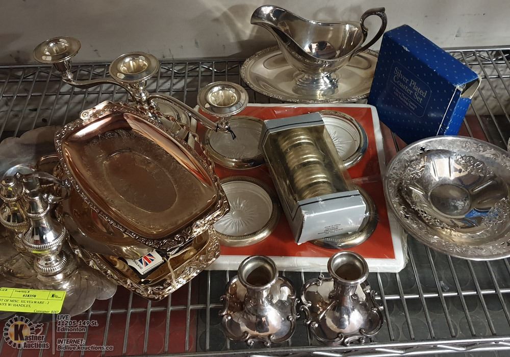 LOT OF MISC. SILVERWARE - 2 TRAYS W/ HANDLES,