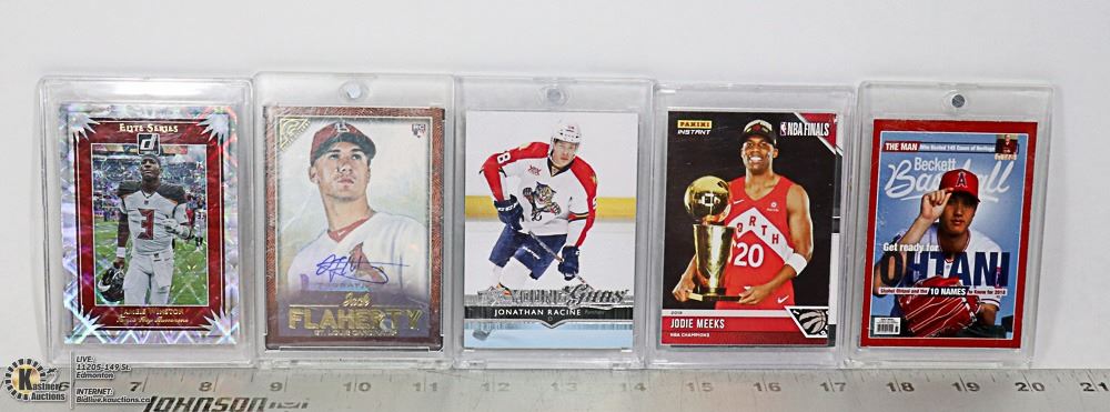 INCLUDES NHL - JONATHAN RACINE ROOKIE CARD, MLB - , JACK FLAHERTY, NFL - JAMEIS WINSTON (ELITE SERIES), NBA - JODIE MEEKS