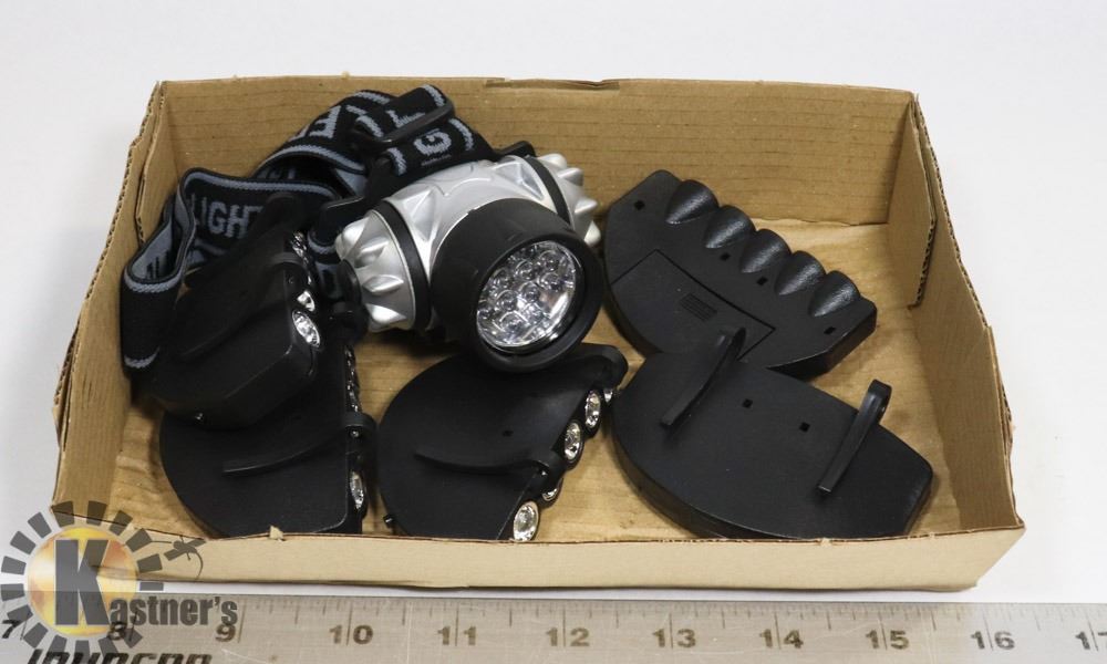 LOT OF NEW 5 CAP LIGHTS AND ONE HEAD LED LAMP,WORK