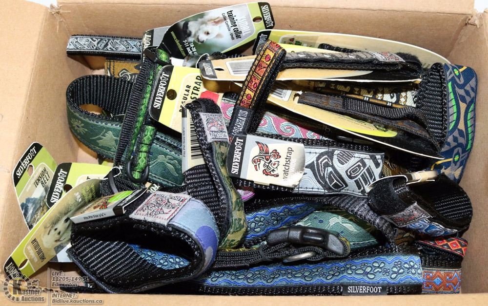 LOT OF NEW BELTS, DOG COLLAR'S, WATCH STRAPS,