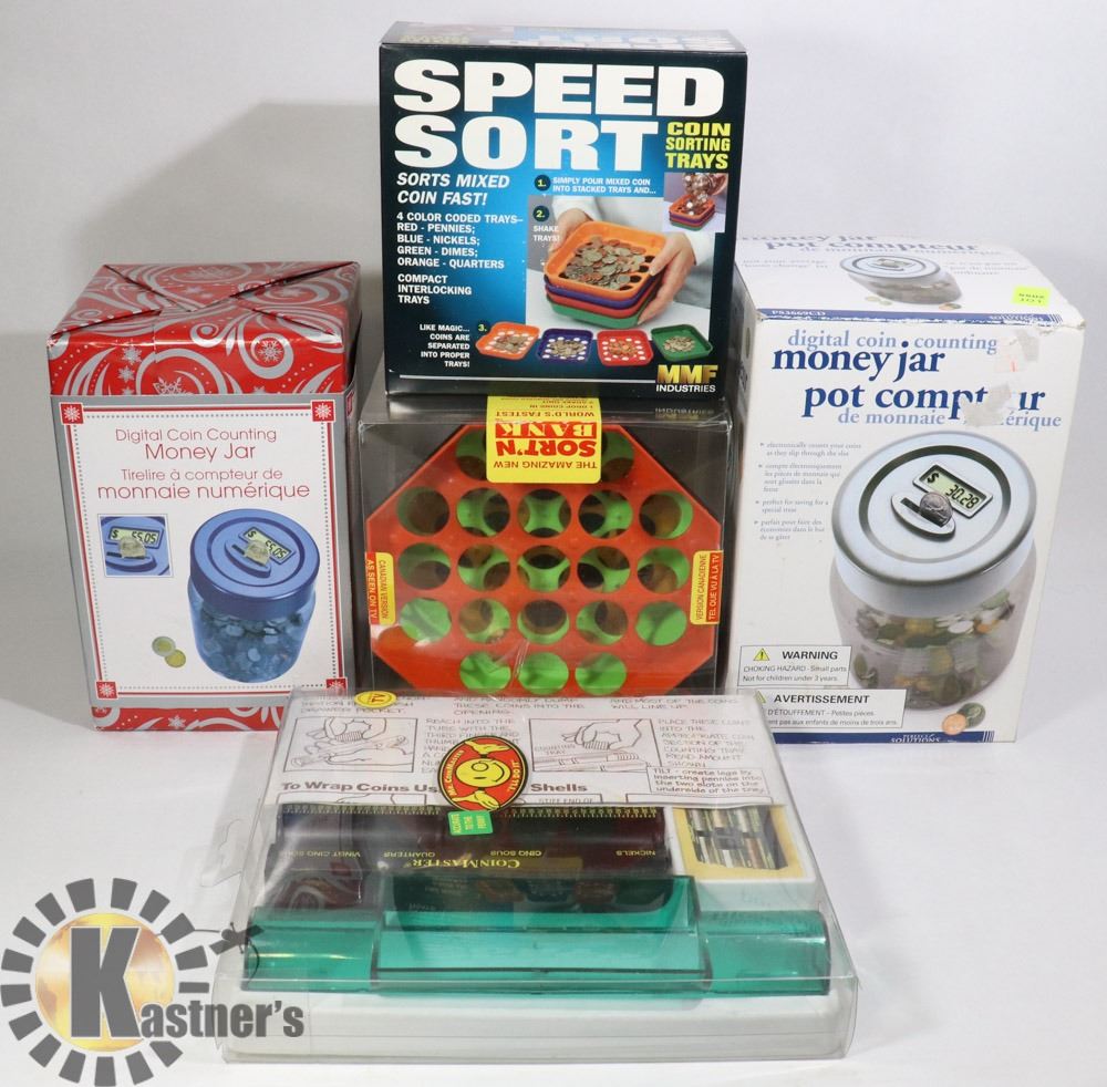 COINMASTER SORTERS, (2) DIGITAL MONEY JARS, SPPED SORT, SORT BANK COIN MASTER. GENERAL