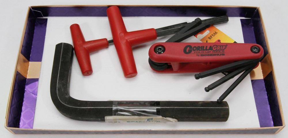 BONDHUS GORILLAGRIP FOLDING SET 5-10MM; T-HANDLE 3/8" & 5/32"; 22MM LARGE KEY. MADE IN USA. TOOLS.