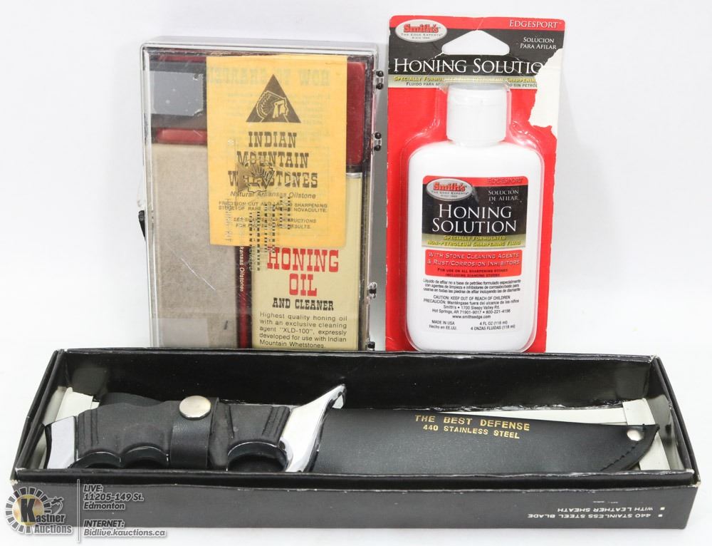 MOUNTAIN WHETSTONES HONING KIT, AND HONING SOLUTION. OUTDOORS.