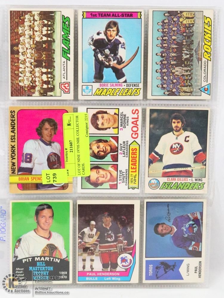 LOT OF NINE 1970S NHL COLLECTOR CARDS.