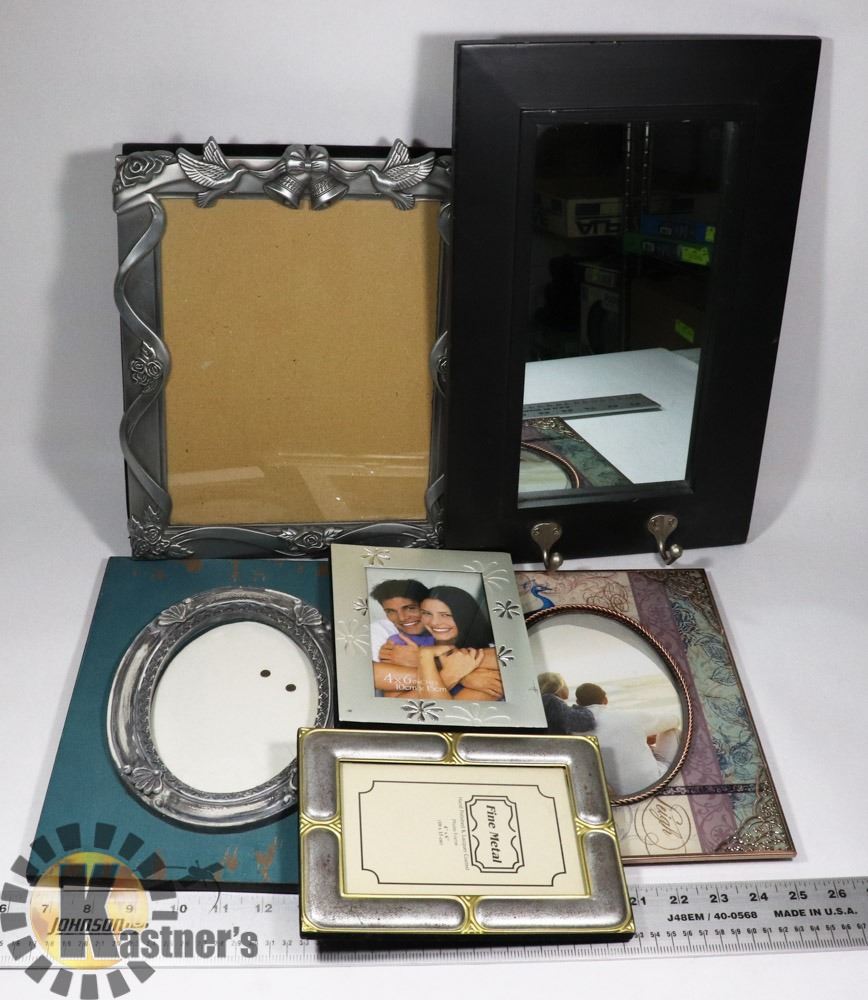 GLASS & METAL PEACOCK, DISTRESSED WOOD, 2 METAL, MIRROR & HOOK, PEWTER WEDDING ALBUM & BINDER|GENERAL